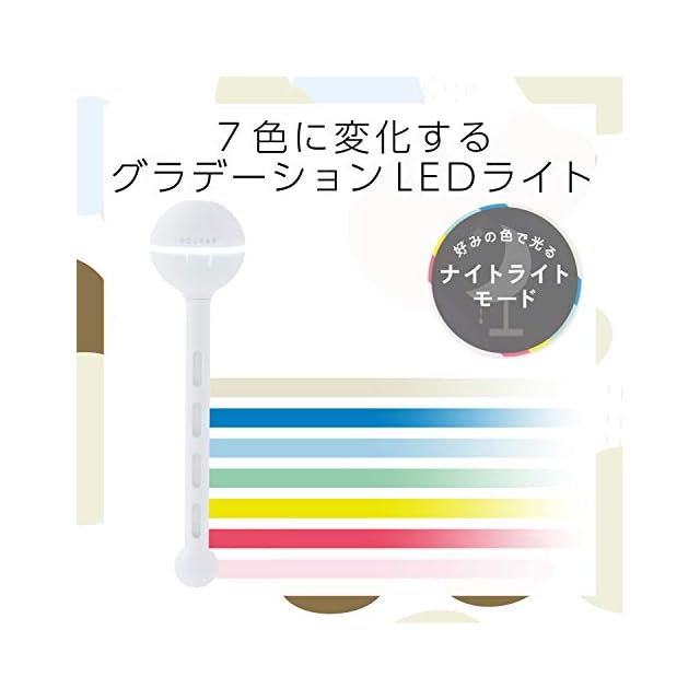 7色(白・赤・紫・青・淡青・緑・黄)にグラデーションするLEDライト付きで、リラックス空間を演出します。
