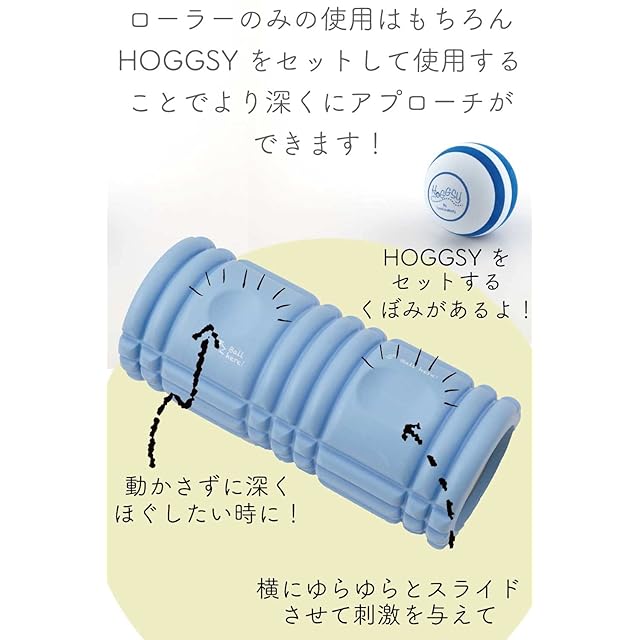 ☑【併用による相乗効果】HoggsyRollerにある2つのくぼみに、筋膜リリースボールHogssy ( ホグッシー )をはめ込みが可能!①円形のくぼみは身体を動かさず深くほぐしたい時②楕円形くぼみは身体をゆらゆらとスライドさせて刺激を与えながら使用できます。より深い部分の筋膜リリースができるようになり身体をほぐしてくれます。