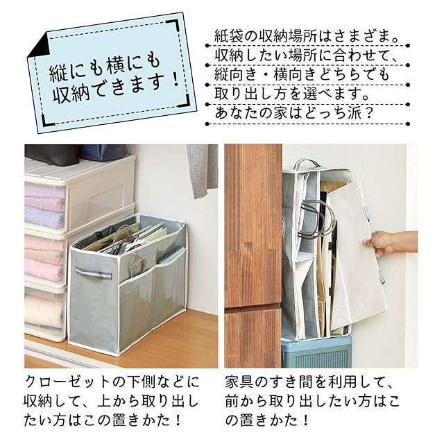 たまりがちな紙袋をまとめてすっきり収納。