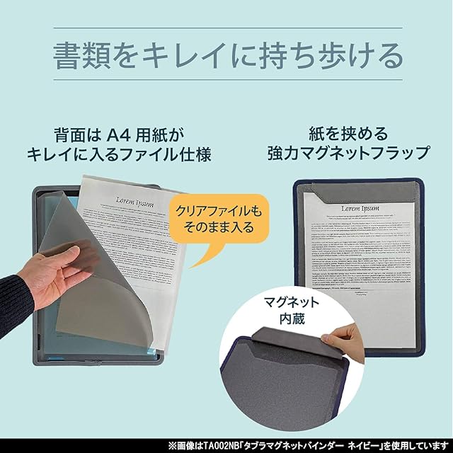 マグネット内蔵のバインダーでスチール面に貼り付け可能