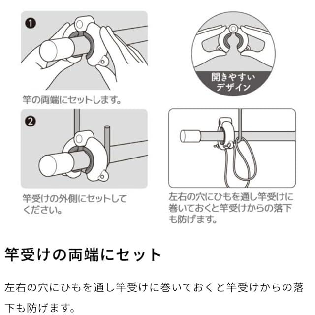 商品内容:左右から止めるタイプ(竿の直径2.5cm~4cmに対応)