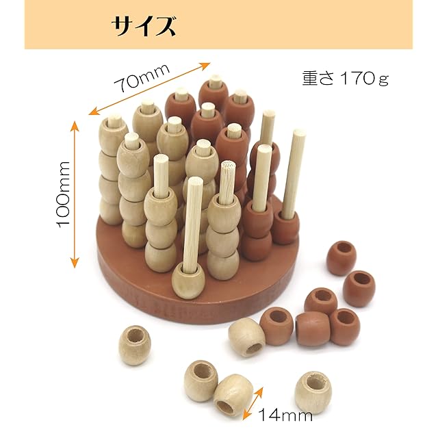 五目並べゲームの立体版、3D 四目ならべです。 <br> やってみると案外難しい。立体感覚のゲームで楽しみながら脳トレ! <br> 子ども、大人、高齢者にも楽しめます。勝負の決め手は立体思考ができるかどうか。案外こどもの方が強いです。 <br> 高齢者の認知症予防にも役立つと思います。2人でやるので人との交流が出来ますし、ゲームと会話が楽しめます。楽しみながらの脳トレが大切だと思います。 <br> サイズ:10cm✖7㎝ 玉径:1.4㎝✖1cm 重量:170g <br>