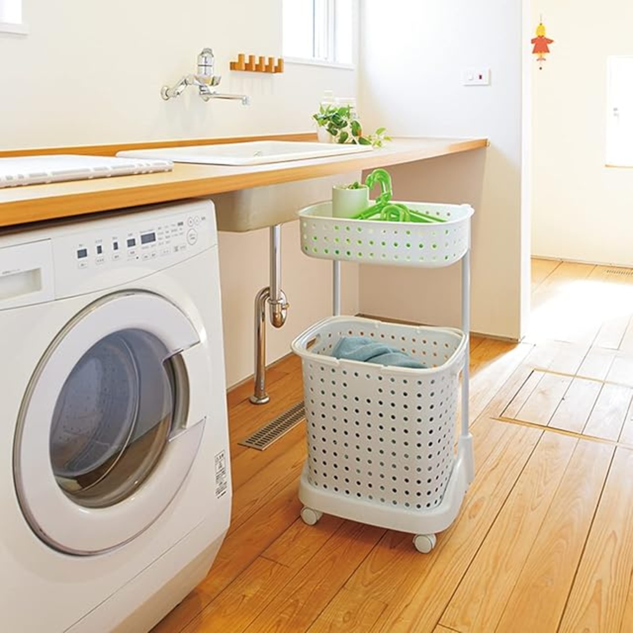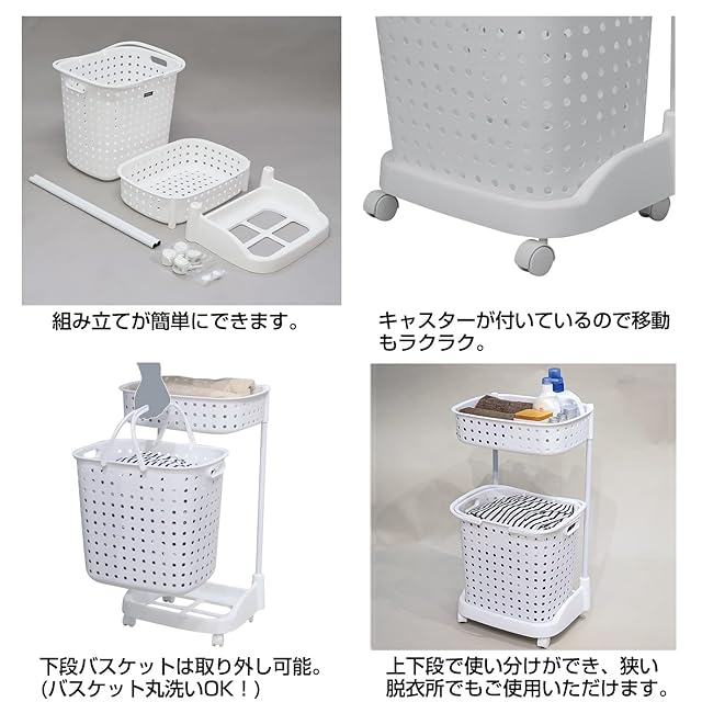 商品名:レクエアランドリーバスケット2段 ホワイト