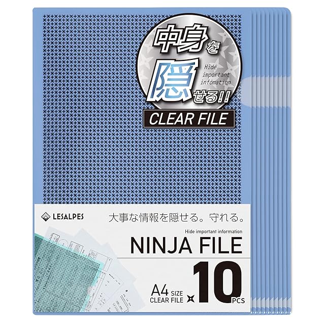 【 中身が隠せる忍者ファイル 】 クリアファイル a4 A4サイズ 10枚セット (青) クリアホルダー のぞき見防止 情報保護 重要機密書類 秘密 プライバシー LESALPES