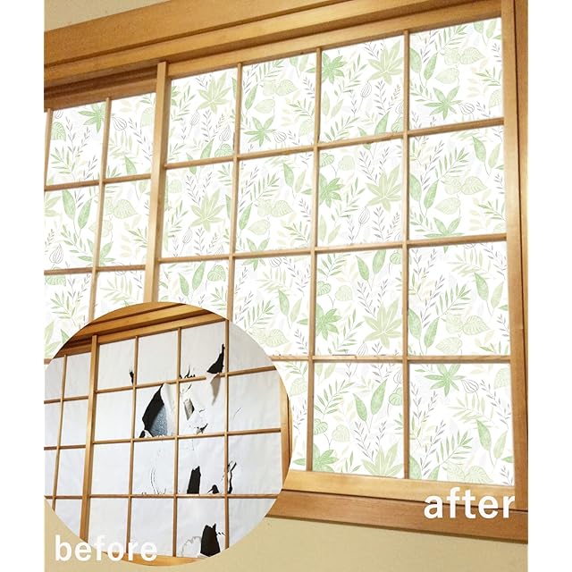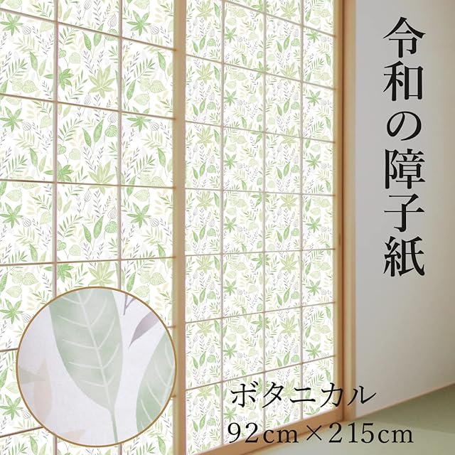 商品名:菊池襖紙工場 令和の障子紙 ボタニカル RS008 ホワイト・グリーン
