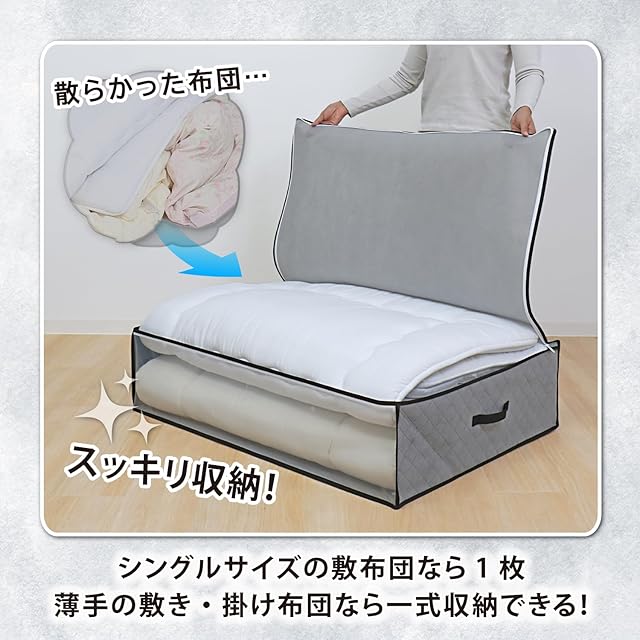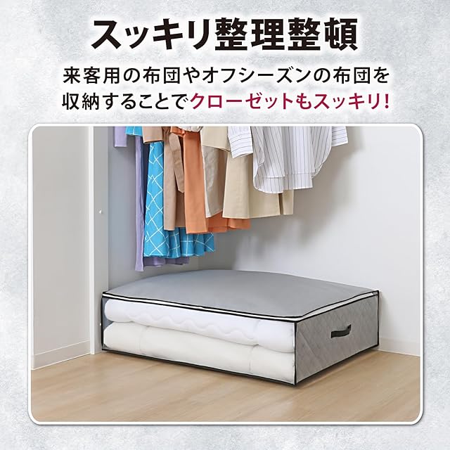 商品名:アストロ 消臭 敷布団収納ケース 活性炭と珪藻土のWパワー 消臭保管 通気性の良い不織布がホコリなどの汚れをガード 出し入れや持ち運びがしやすい持ち手付き 3層構造の厚手でしっかりとした生地 透明窓付き 布団収納 布団袋 収納ケース 引っ越し グレー 615-26