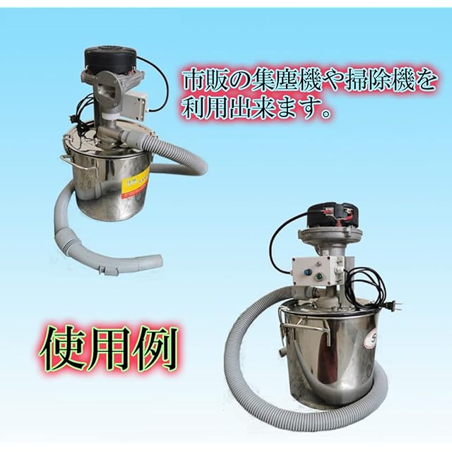 市販の掃除機や集塵機に取り付けてペール缶や一斗缶 ドラム缶 などの容器に吸い込んだ物を集めるようにできます。容器の中にゴミ袋を入れておけばそのまま袋ごと捨てる事ができて面倒が無く便利に使用できます。色々なものを吸い込んで収集することができます。木くず おがくず 野菜くず 砂 落ち葉 芝生 ほこり 石 砂利 鉄くず 切削くず セメント コンクリート モルタル など吸い込んで掃除できます。