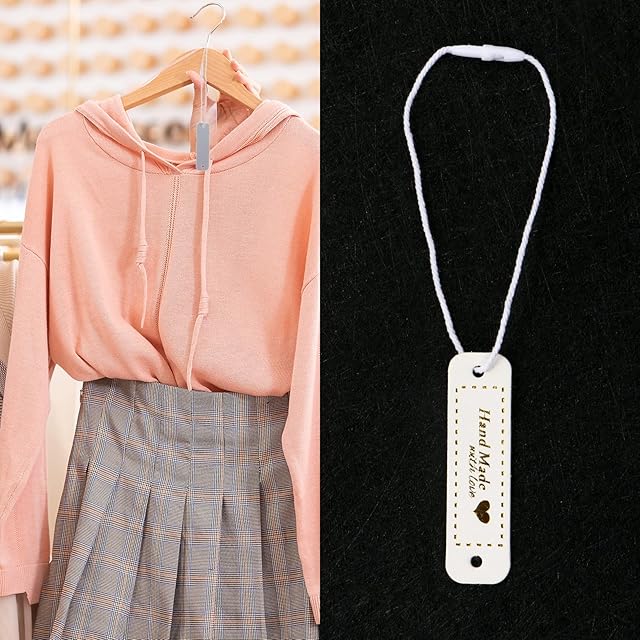 「糸ロックスの材質」留め部分はプラスチックです。丈夫で落ちにくく、長く使えます。紐の部分は、手触りが柔らかく、高級感があり、ブランドタグや値札などを映えさせます。