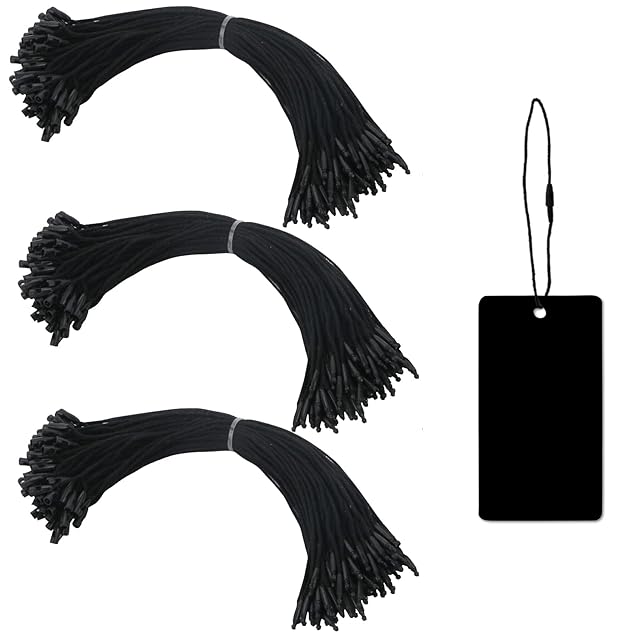 YOVOY タグ紐 棉 タグファスナー ブランドタグ つづりひも 棉 タグ糸 糸ループ 業務用タグ紐 ループロック ロック式 店舗 洋服 衣類 値札 300本セット (ブラック)