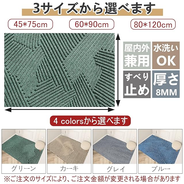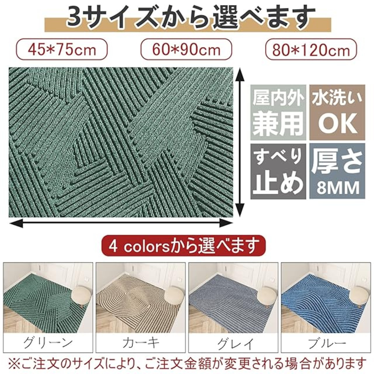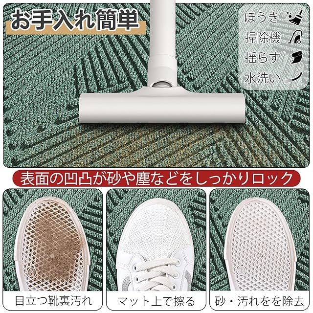 玄関マット 北欧 室内 屋外 泥 砂落とし 水や日差しに強く お手入れ簡単 水洗い pvc 玄関 マット 風水 おしゃれ 玄関外マット 店舗用玄関マット業務用玄関マット 滑り止め付き 足拭きマット 約45×75cm グリーン