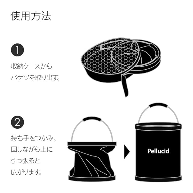 商品名:ペルシード(Pellucid) 洗車用品 折りたたみバケツ 約φ245×H275mm(持ち手を除く) 11L PCD-201