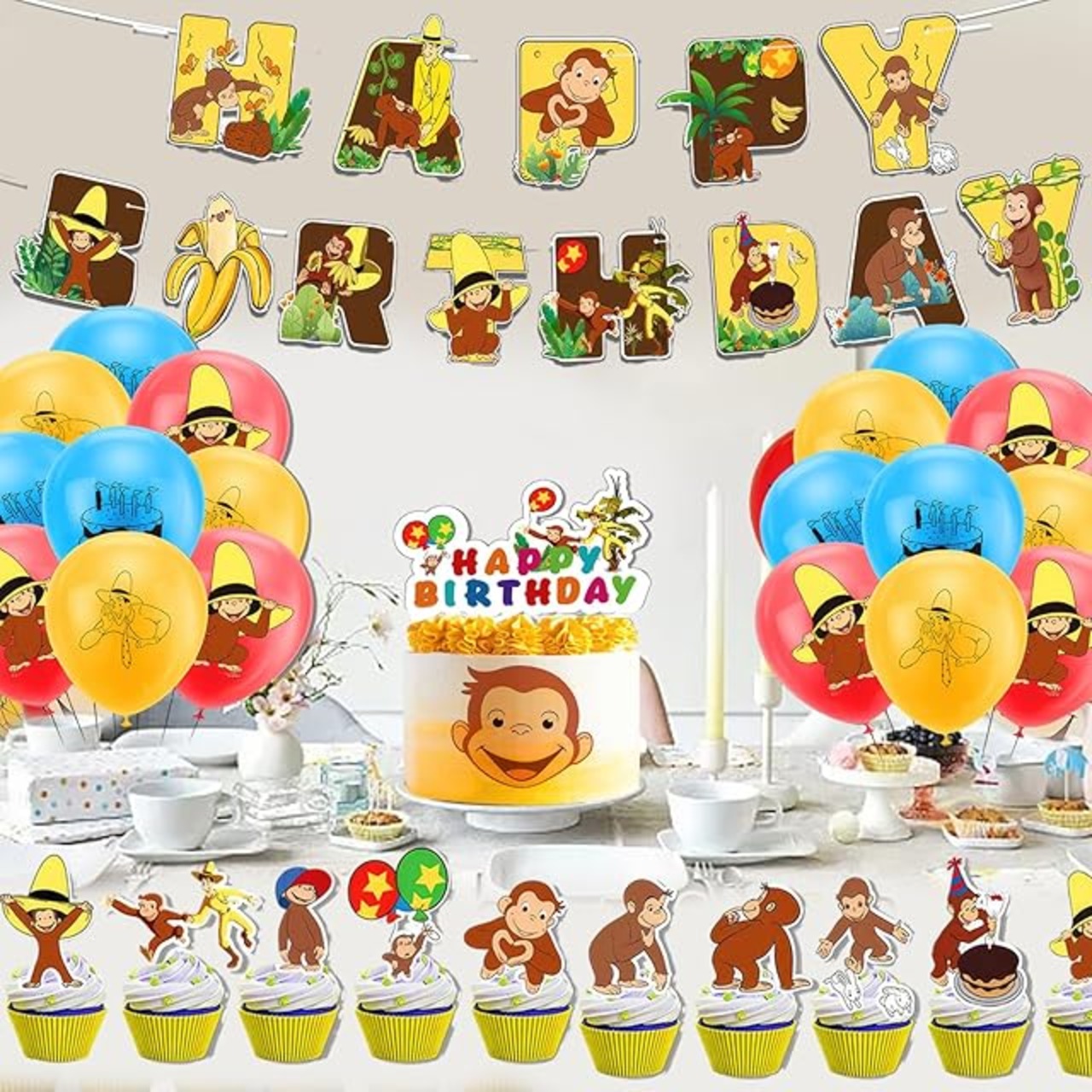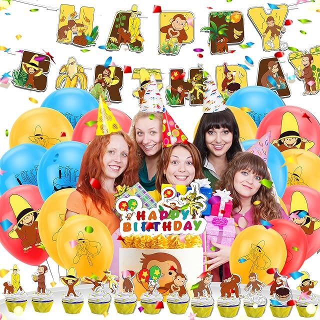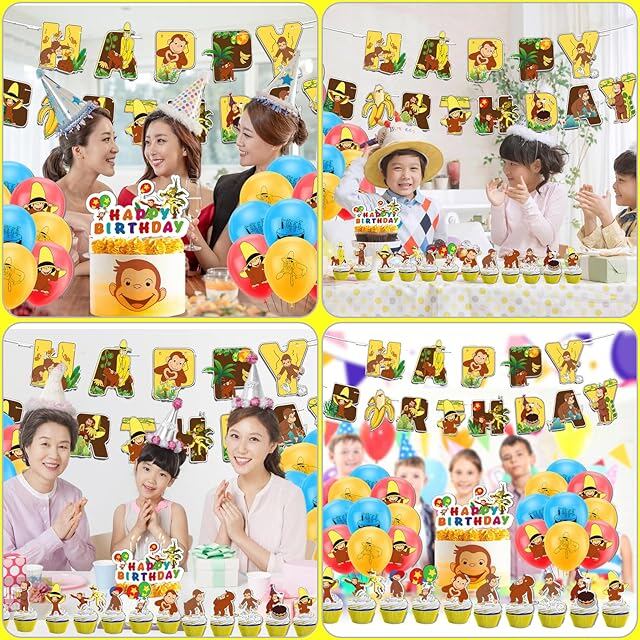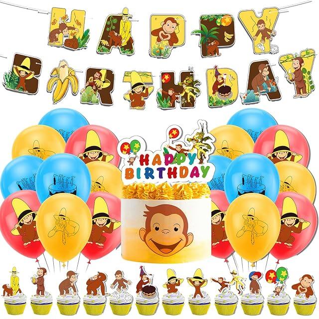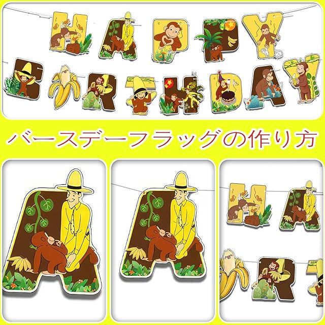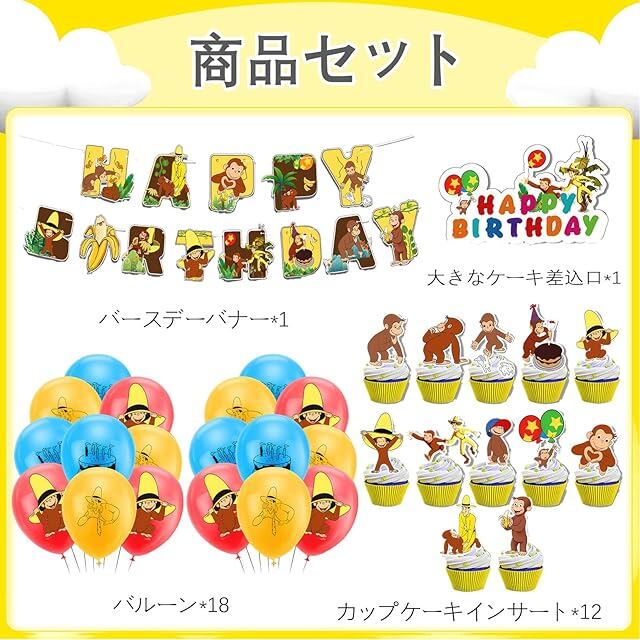おさるのジョージ 風船 誕生日バルーン 飾り付け 男の子の女の子の誕生日の装飾 アニメ パーティー 飾り HAPPY BIRTHDAY バナー ガーランド ケーキトッパー バルーン 装飾 クリスマス 幼稚園 子供 誕生日お祝い [並行輸入品]
