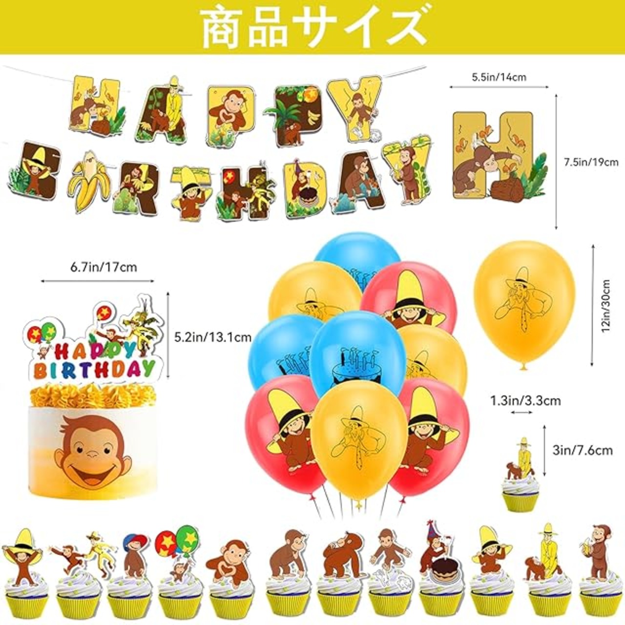 商品名:おさるのジョージ 風船 誕生日バルーン 飾り付け 男の子の女の子の誕生日の装飾 アニメ パーティー 飾り HAPPY BIRTHDAY バナー ガーランド ケーキトッパー バルーン 装飾 クリスマス 幼稚園 子供 誕生日お祝い [並行輸入品]