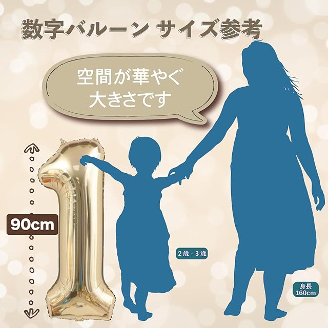 商品名:【風船屋】誕生 数字バルーン シャンパンゴールドファーストバースデー一歳 1才 男の子 女の子 お祝い ベビーフォト (1歳)