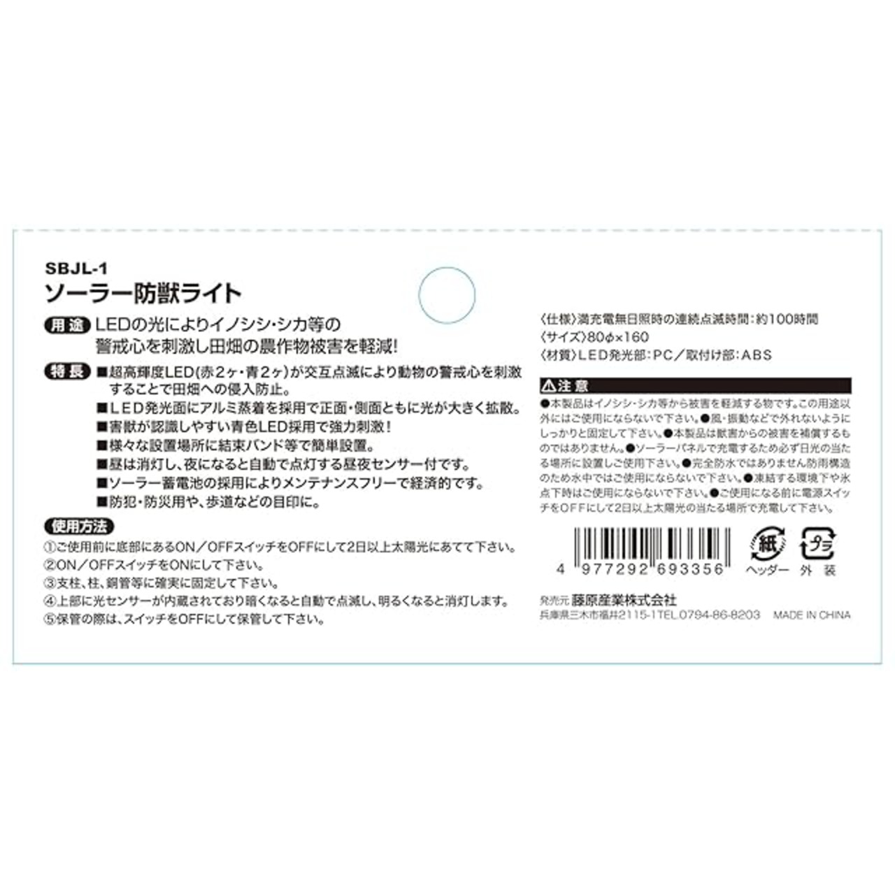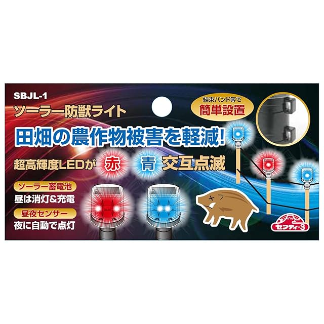 セフティー3 ソーラーLED防獣ライト 赤/青交互点滅 2LED×2 SBJL-1 5個セット