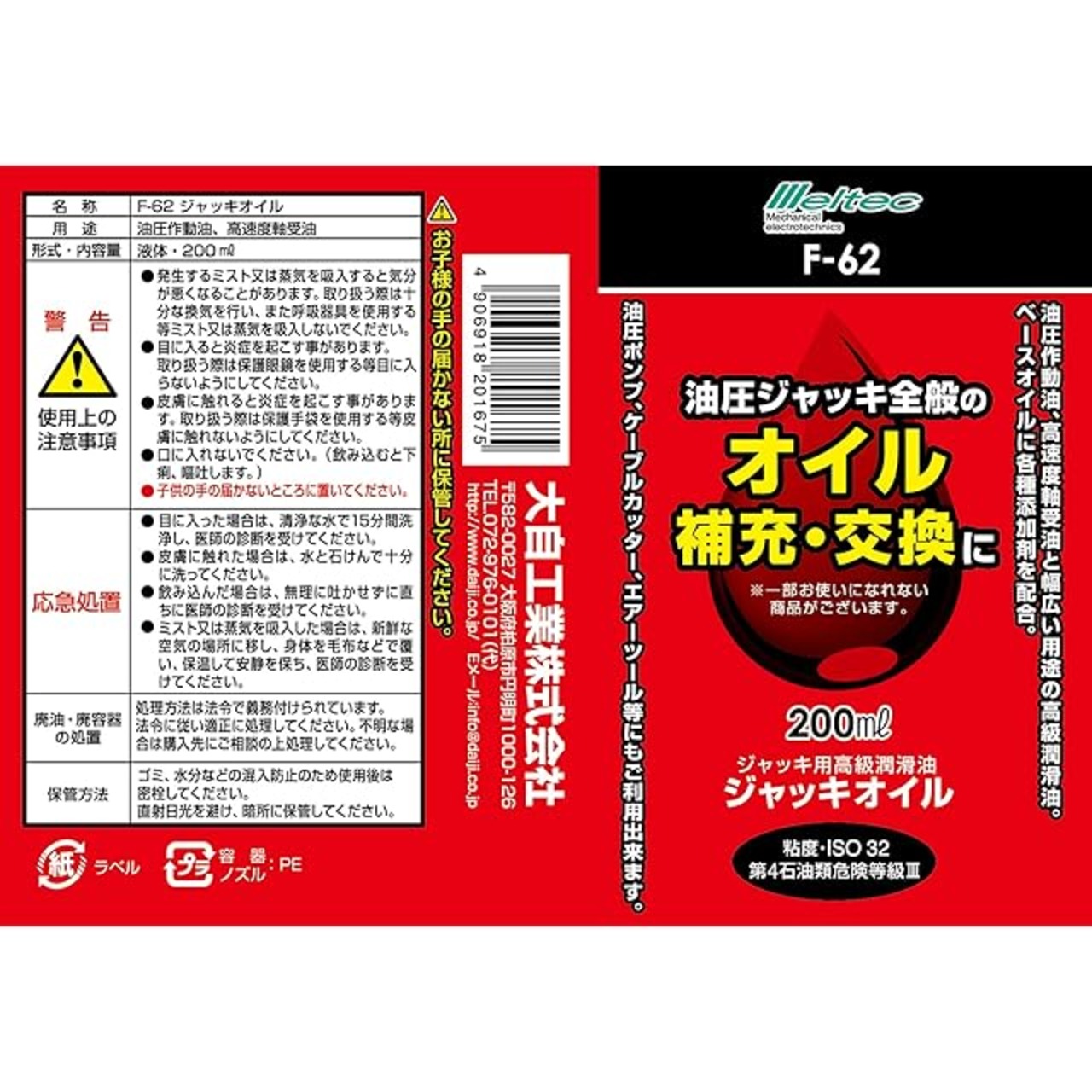 メルテック(meltec) 油圧ジャッキ用 ジャッキオイル 200cc Meltec F-62