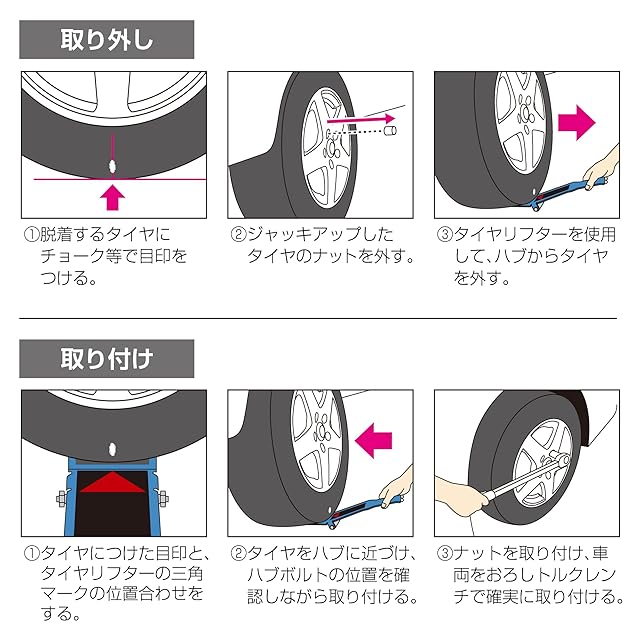 重いタイヤの脱着に。テコの原理を使ったタイヤ交換の補助工具!
