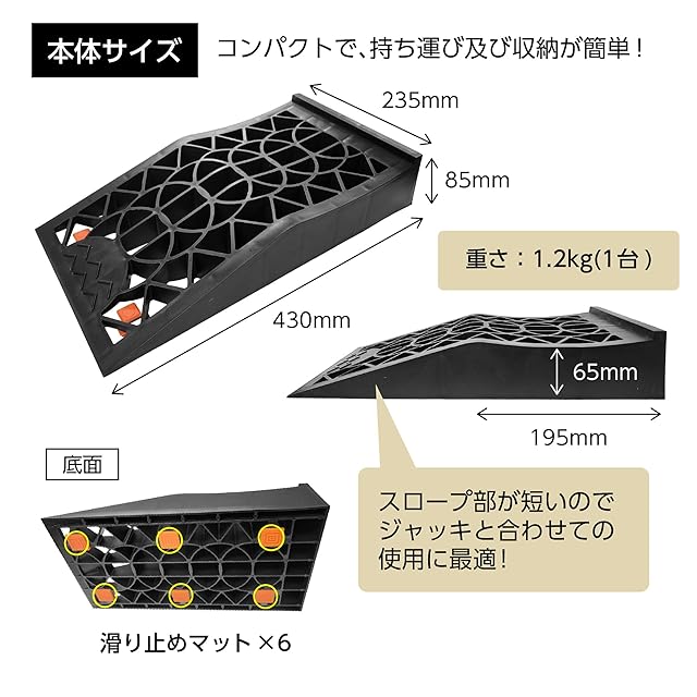 商品名:メルテック(meltec) ジャッキサポート 乗せるだけ車高65mmUP 2台入り FJ-95