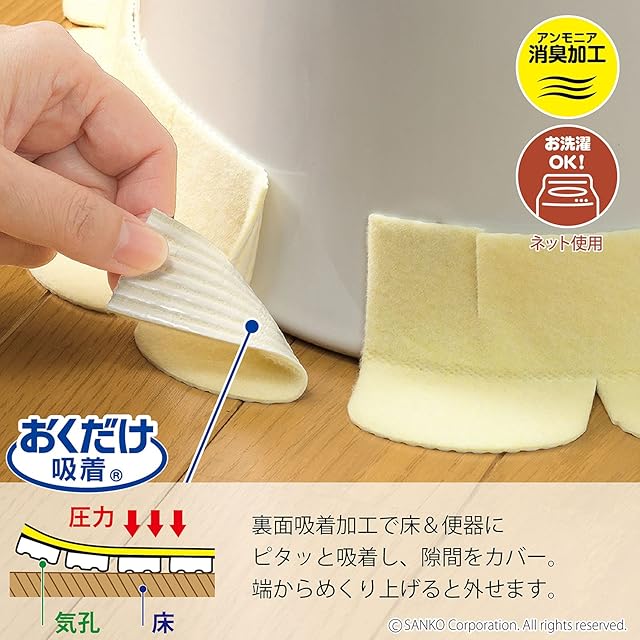 便器と床のすきまの汚れを防ぐテープ2枚入りです。便器から垂れてきたおしっこを吸収、またホコリや汚れも防止します。