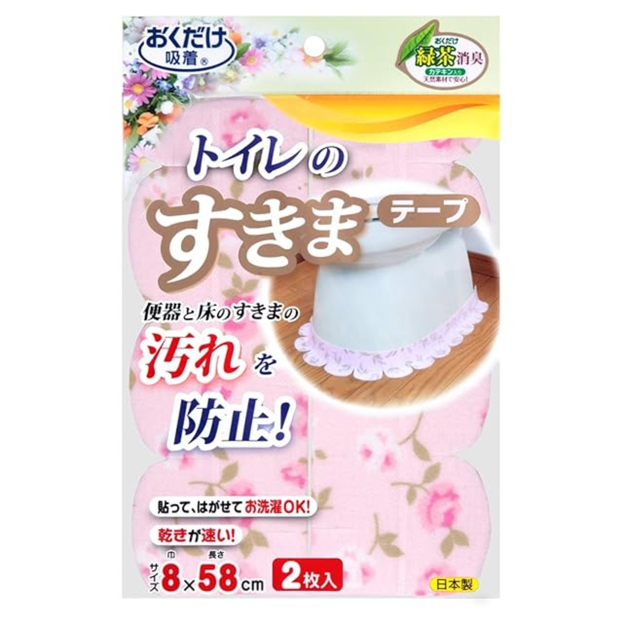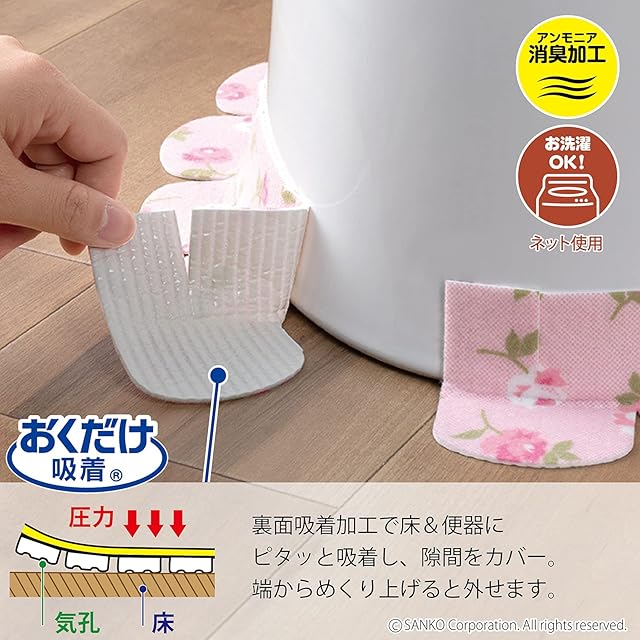 商品名:Sanko サンコー トイレ 便器すきまテープ ずれない 貼るだけ 汚れ防止 【日本製 消臭 洗える】 おくだけ吸着 バラ ピンク 2枚 8×長さ58cm KB-45
