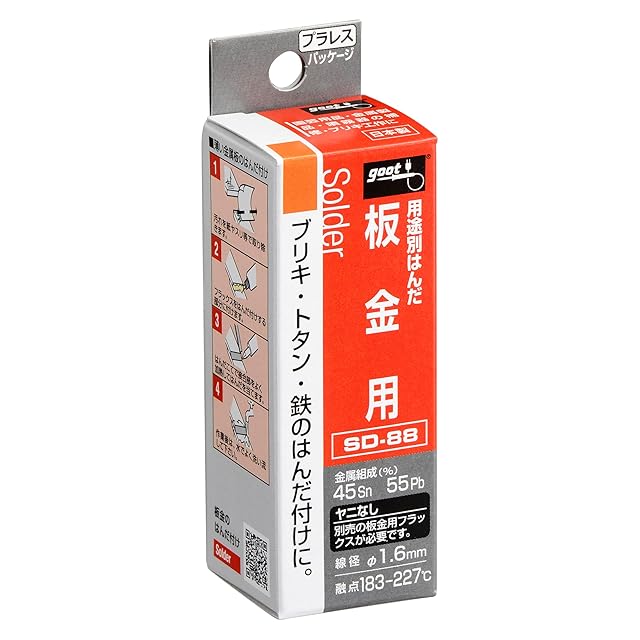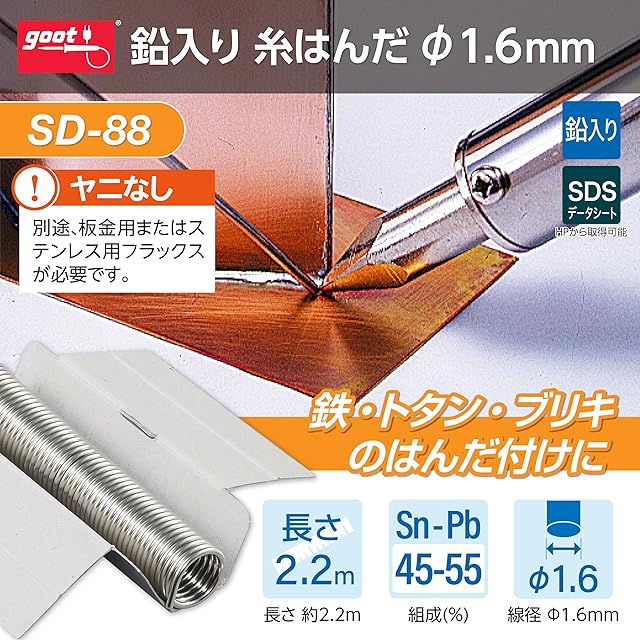 太洋電機産業(goot) 板金用 鉛入りはんだ φ1.6mm 約2.2m スズ45%/鉛55% ヤニ無 SD-88 日本製