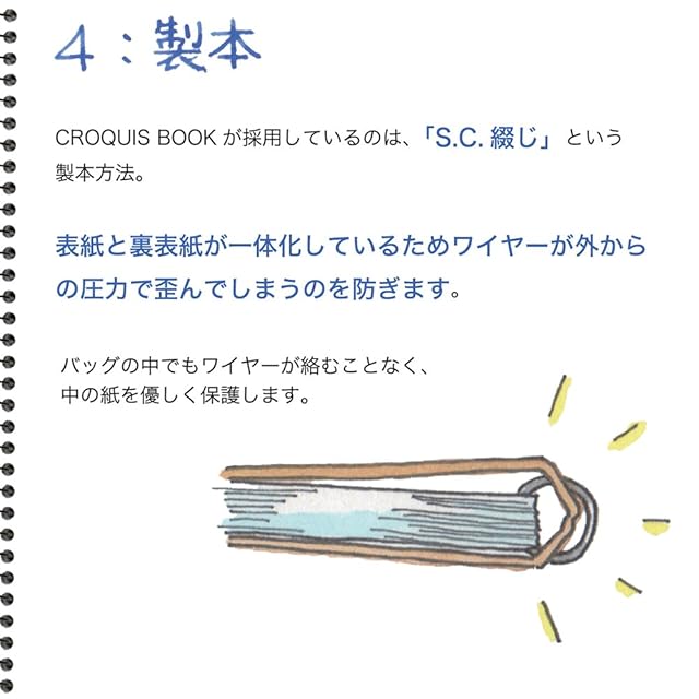 白クロッキー紙(中性紙、52.3g/m2)・スパイラルSC(コイルループ)製本
