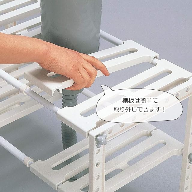 棚板が取り外しが可能になっているので、シンク下の排水トラップを避けて棚が作れます。