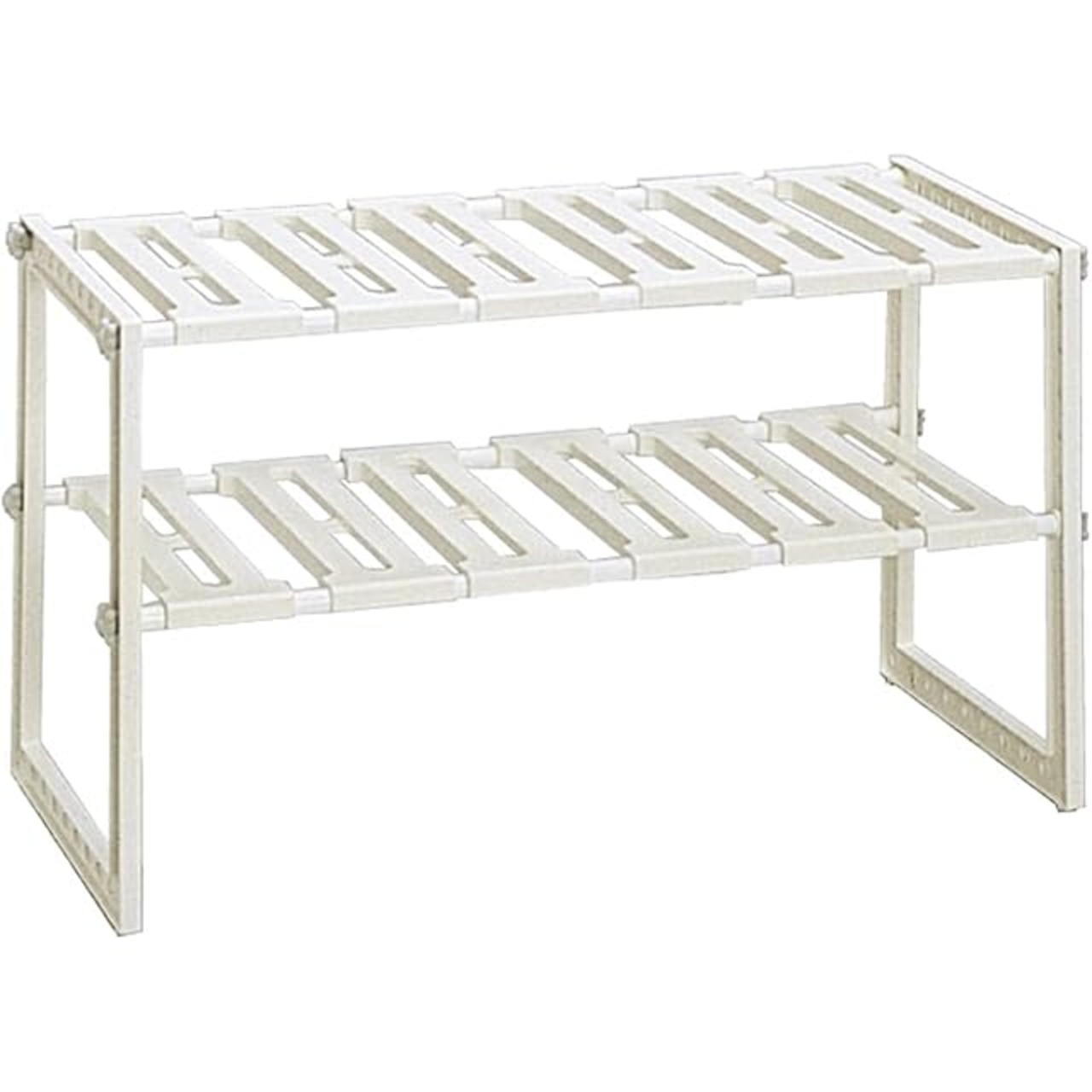 商品名:Belca(ベルカ) 日本製 キッチン収納 シンク下フリーラック 伸縮タイプ 幅50~75×奥行30.3×高さ39.8cm ホワイト シンク下収納 2段 棚 VR-EXT
