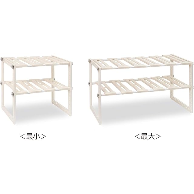 Belca(ベルカ) 日本製 キッチン収納 シンク下フリーラック 伸縮タイプ 幅50~75×奥行30.3×高さ39.8cm ホワイト シンク下収納 2段 棚 VR-EXT