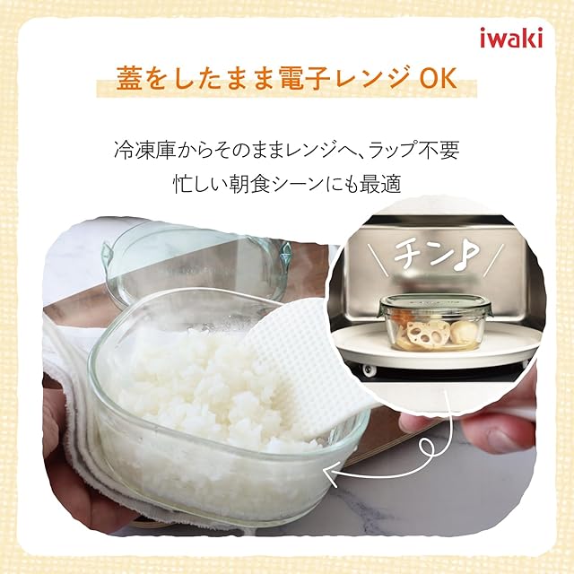 商品名:iwaki イワキ 耐熱ガラス 保存容器 ピンク 角型 S 450ml ごはん 1膳 パック&レンジ