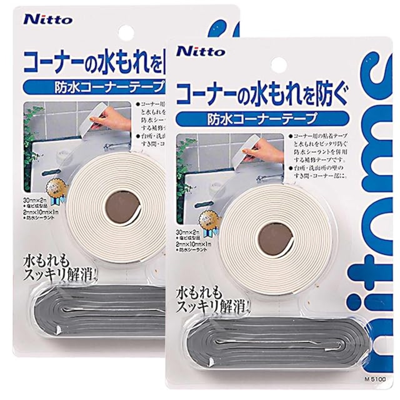 商品名:ニトムズ(Nitoms) 防水コーナーテープ 幅30mm×長さ2m ホワイト 2個セット 防水シーラント付き 日本製 浴室 お風呂 キッチン 白 A9092