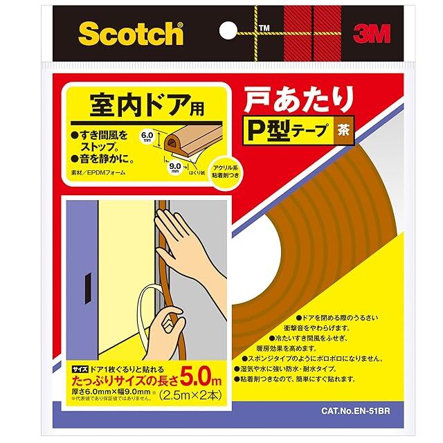 商品名:3M スコッチ室内ドア戸あたりP型テープ 5m巻 茶 EN-51BR