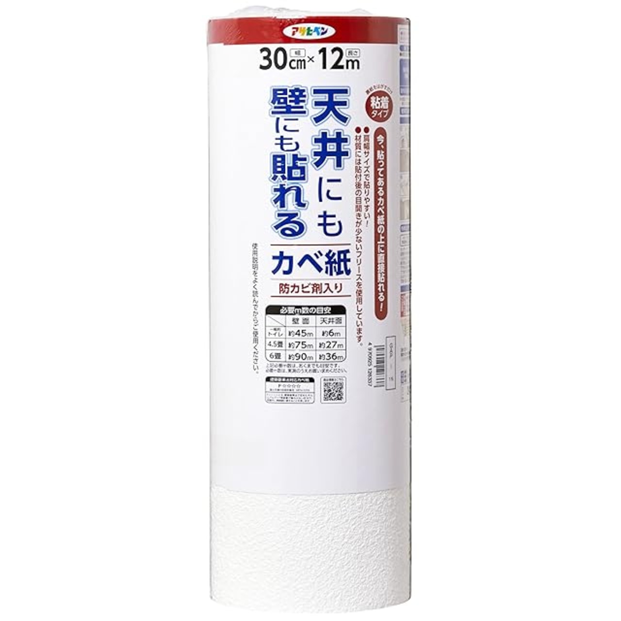 商品名:アサヒペン 壁紙シール 天井にも壁にも貼れるカベ紙 幅30cm×長さ12m GAP-15 貼りやすい幅 扱いやすい 厚手 透けにくい 壁紙の上から貼れる 目開きしにくい シールタイプ 粘着タイプ シックハウス対策品 日本製