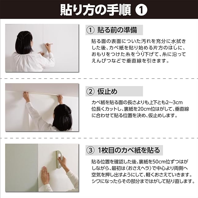 【材質/成分】・カベ紙:塩化ビニル、特殊不織布。 ・粘着剤:アクリル樹脂。 ・裏面フィルム:紙