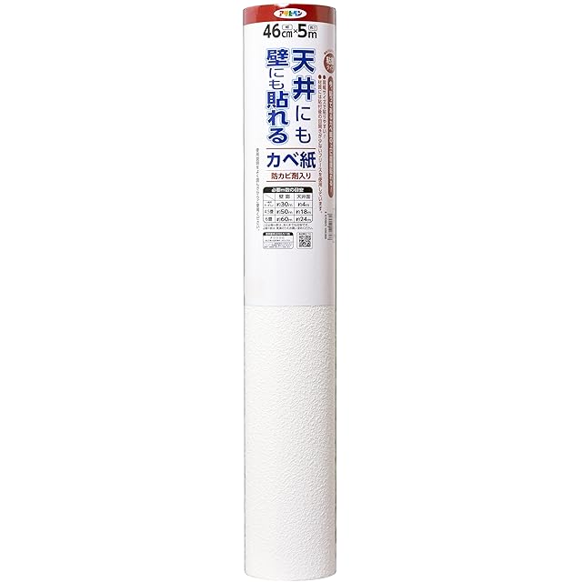 アサヒペン 壁紙シール 天井にも壁にも貼れるカベ紙 幅46cm×長さ5m APG-25 肩幅サイズで貼りやすい 扱いやすい 厚手 透けにくい 壁紙の上から貼れる 目開きしにくい シールタイプ 粘着タイプ シックハウス対策品 日本製