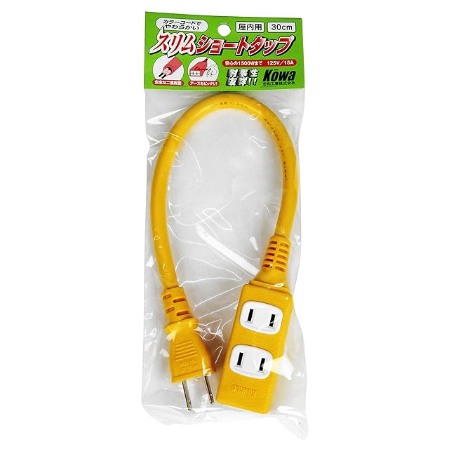 商品名:kowa スリムショートタップ 15A・30cm 3ツ口 キイロ KSS34-03 日本製