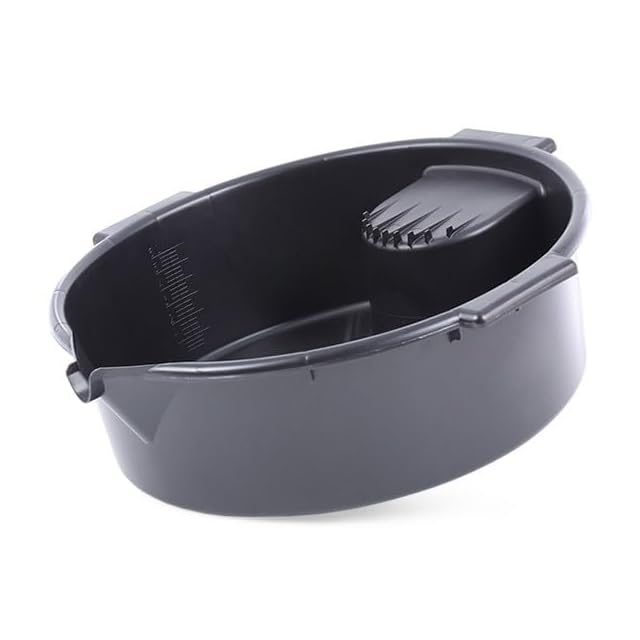 【至高の使用感】こぼれ防止の縁取り設計と便利な目盛り表示。積み重ね収納可能な実用性と、オイル交換、部品洗浄、油抜きなど様々な作業に対応する優れた汎用性