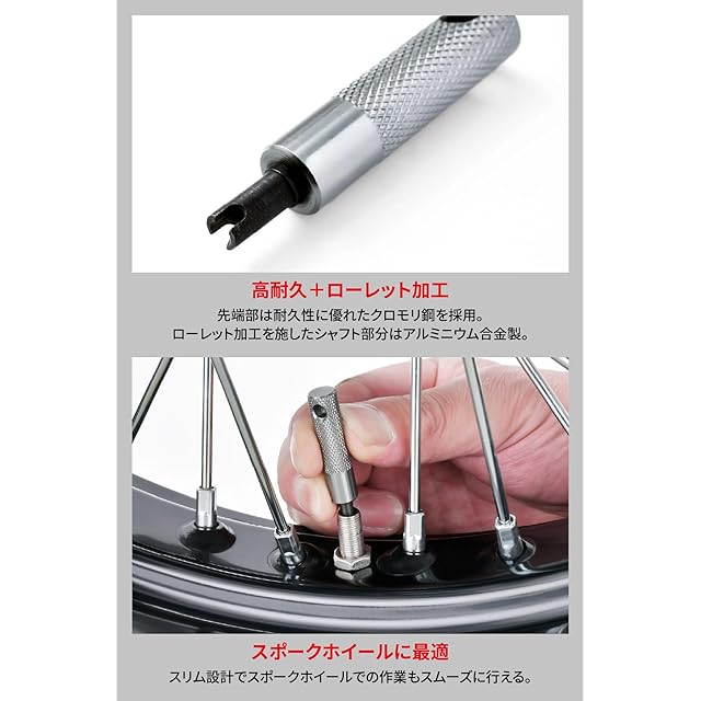 スリム設計でスポークホイールへの使用もスムーズ。