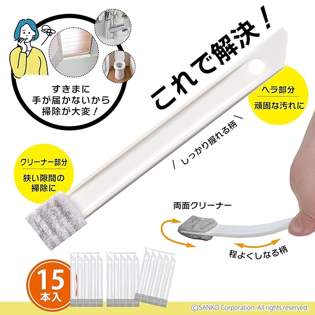 手洗いや洗面台、サッシの溝など、通常のブラシでは届かない部分の汚れもしっかり落とす、隙間ブラシ15本入です。