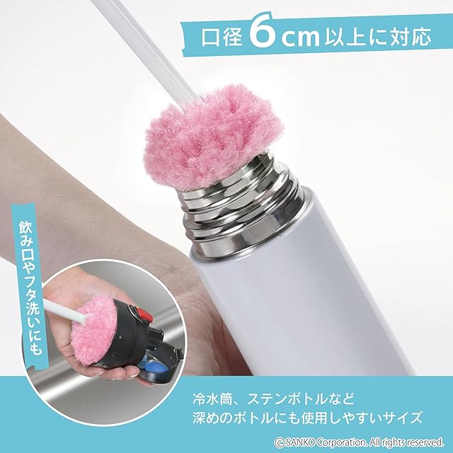 ブラシ部分が繊維ですので冷水筒やステンレスボトルの底やスミまで届き、汚れをきれいにします