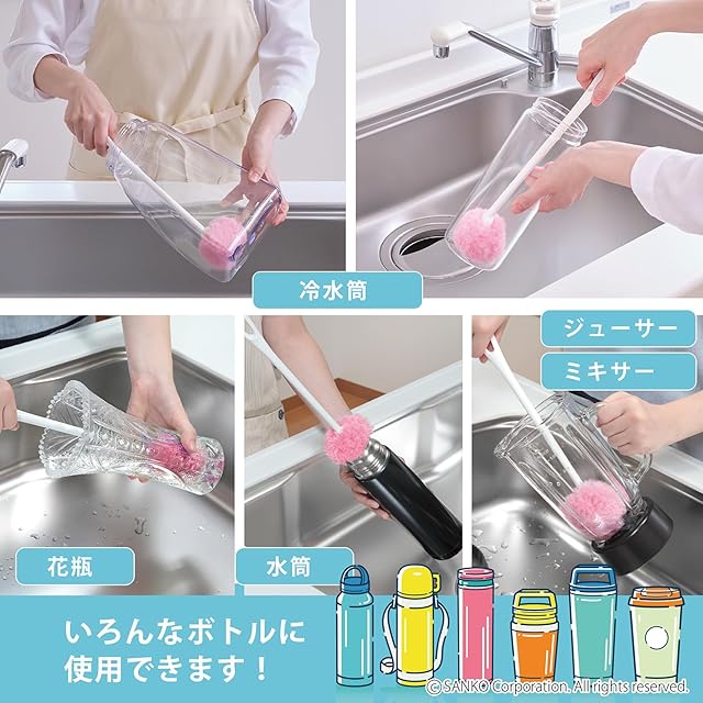 サンコー ボトル洗い ピカピカ冷水筒ボトル洗い びっくりフレッシュ 全長38cm ピンク 日本製 BO-38