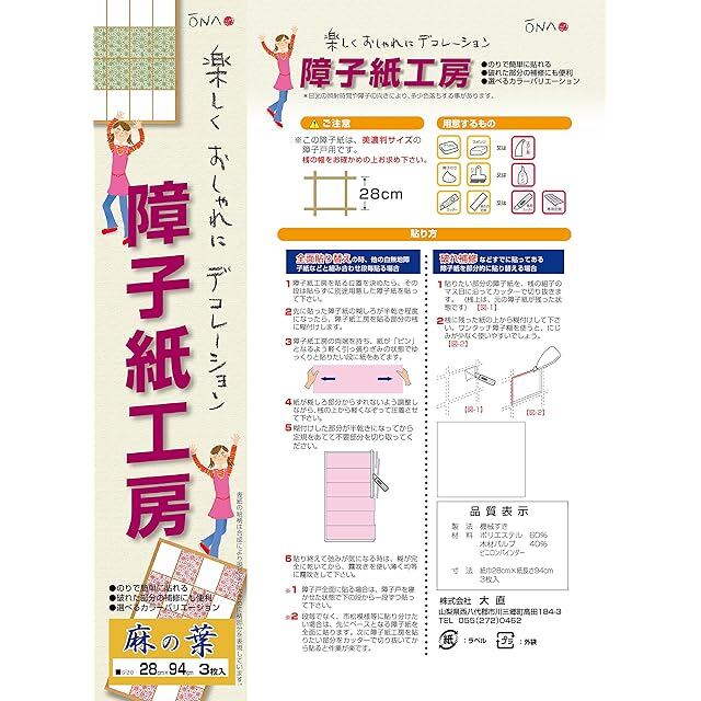 商品名:大直 補修用障子紙 28cm×94cm(3枚入り) 美濃判 障子紙工房 麻の葉 梅柴 KA-05