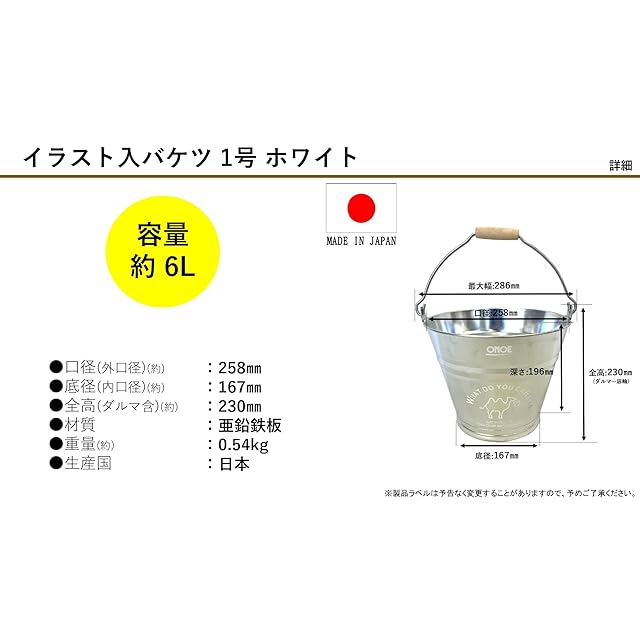 商品名:尾上製作所(ONOE) イラスト入バケツ1号ホワイト [6リットル ガーデニング用品 園芸 キャンプ アウトドア 防災グッズ 口径25.8 x 底径16.7cm x 深さ19.6cm 日本製]