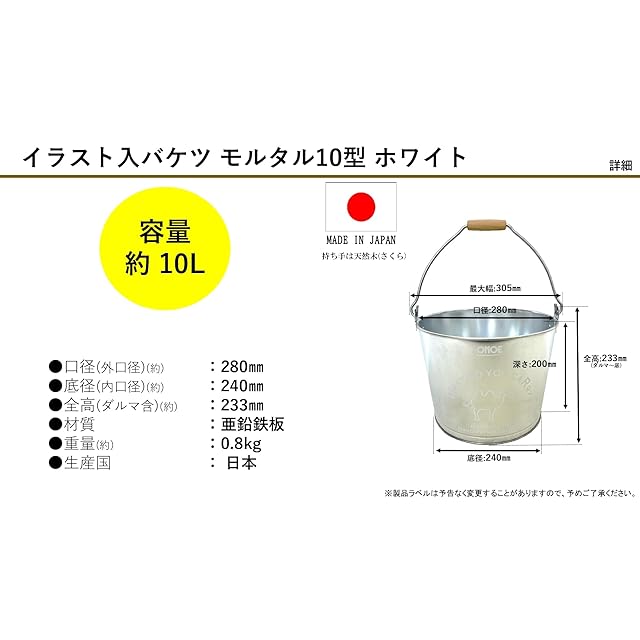 尾上製作所(ONOE) イラスト入バケツモルタル10型ホワイト [15リットル ガーデニング 園芸 キャンプ アウトドア 防災グッズ 口径28.0 x 底径24.0 x 深さ20.0cm 日本製]