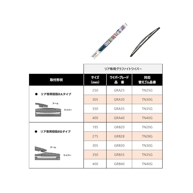 NWB(エヌダブルビー) 車用 リヤ専用グラファイト樹脂ワイパー ブレード 400mm RBタイプ GRB40
