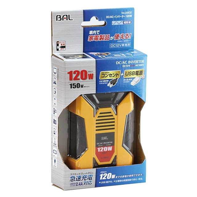 商品名:BAL(大橋産業) DC/ACインバーター 矩形波 DC12V車専用 定格出力:120W No.2802