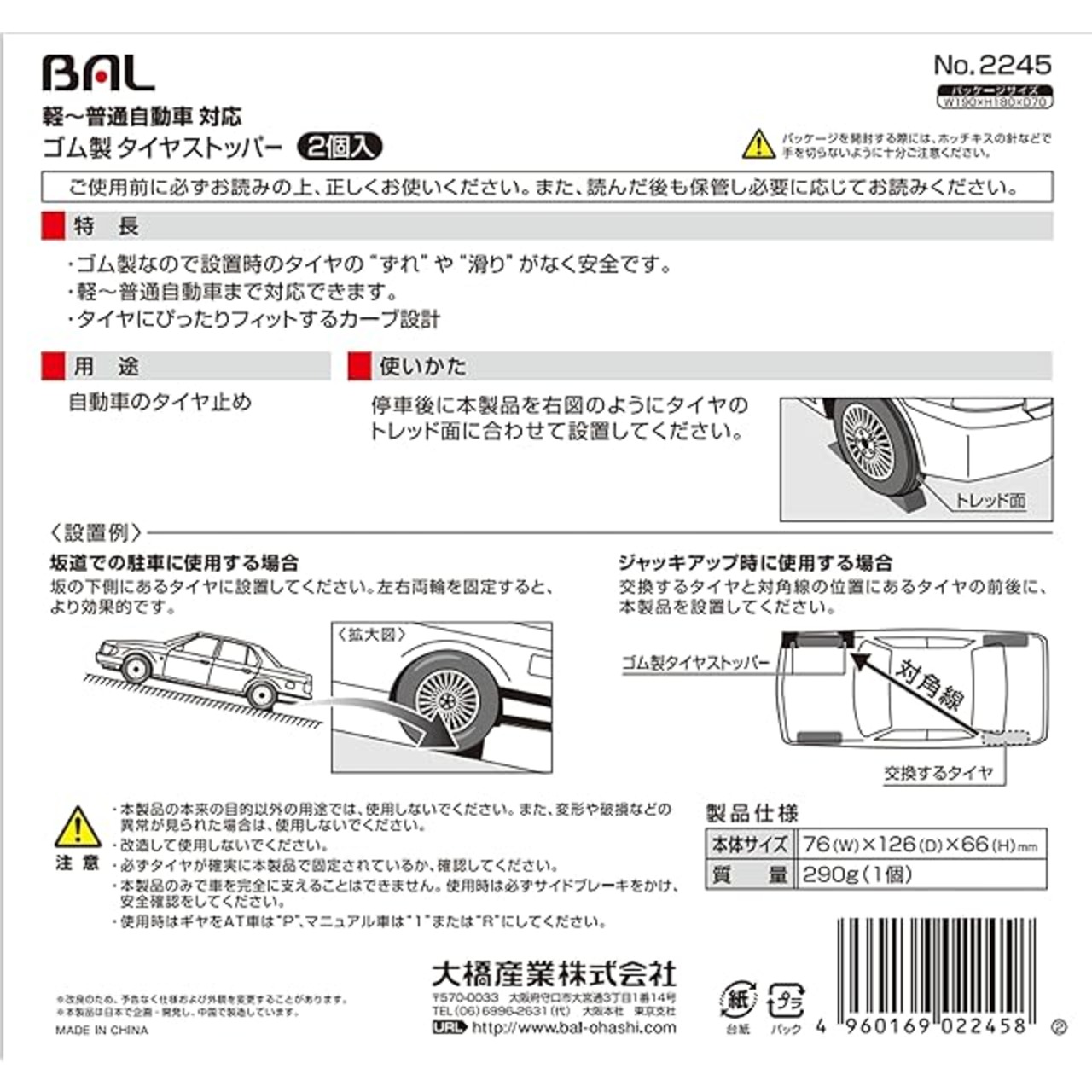 商品名:BAL (大橋産業) タイヤストッパー ゴム製 2個入り No.2245