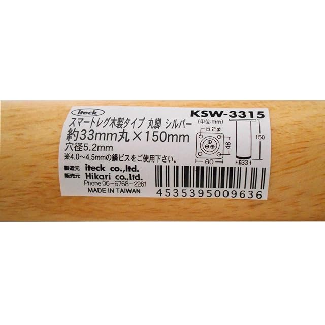 光 スマートレグ木製丸150mm KSW-3315