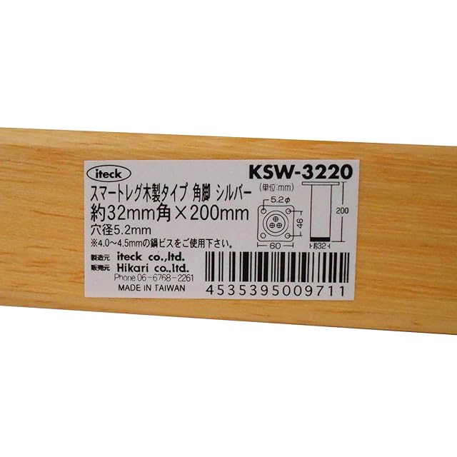 商品名:光 スマートレグ木製角200mm KSW-3220