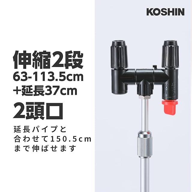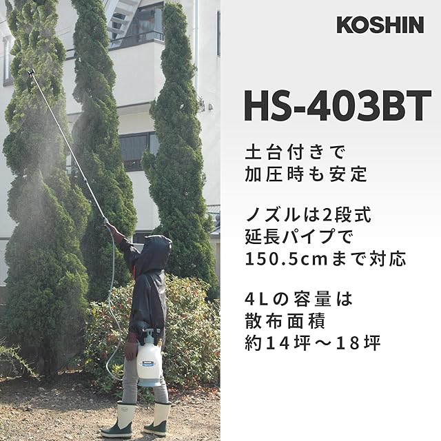商品名:工進(KOSHIN) 蓄圧式 噴霧器 タンク 4L ミスターオート HS-403BT 伸縮 2段 ノズル 継足しパイプ 噴口 2個 防除 消毒 散布 マルチカラー
